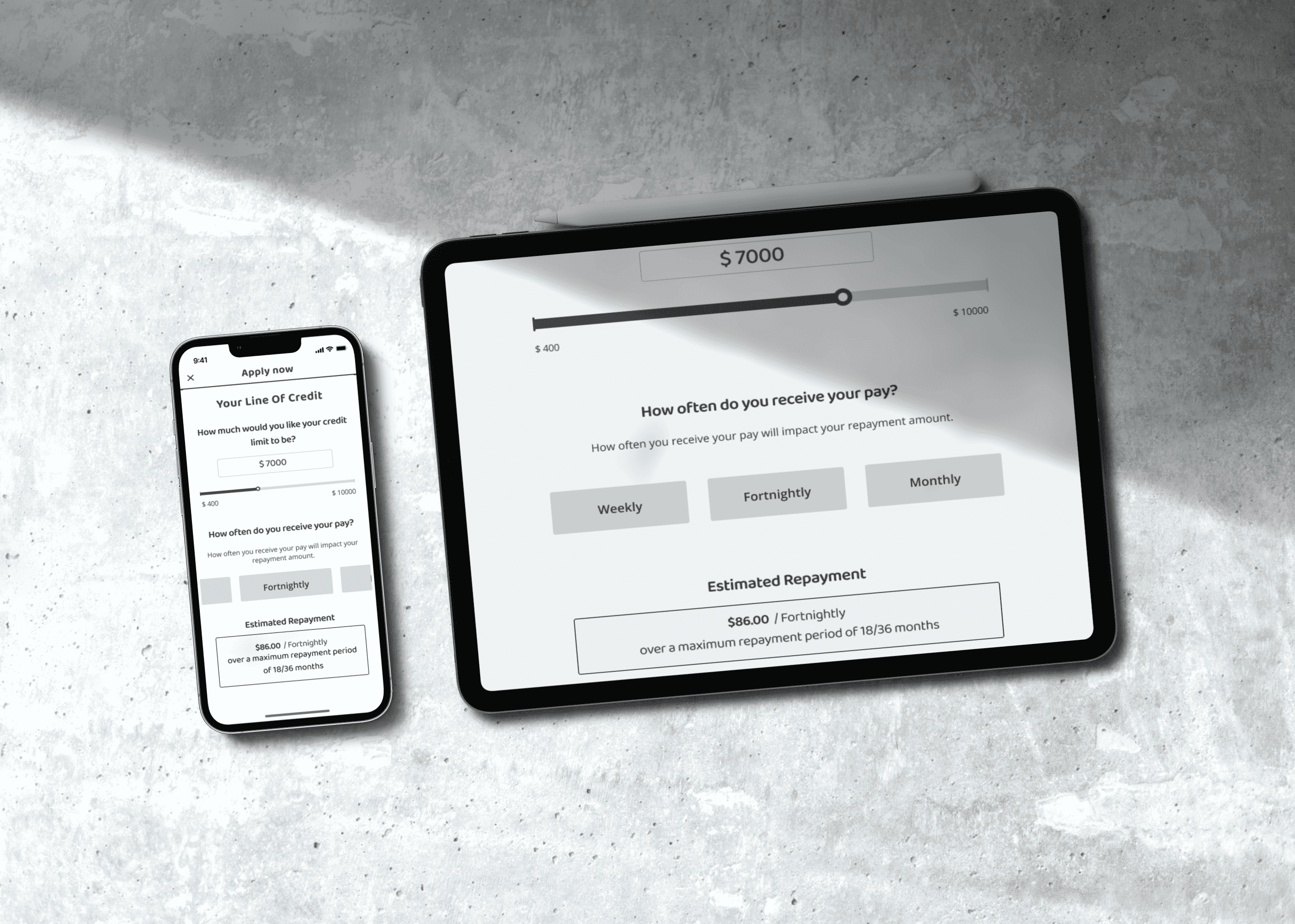 Loan Application Origination Page Design for Mobile and Web